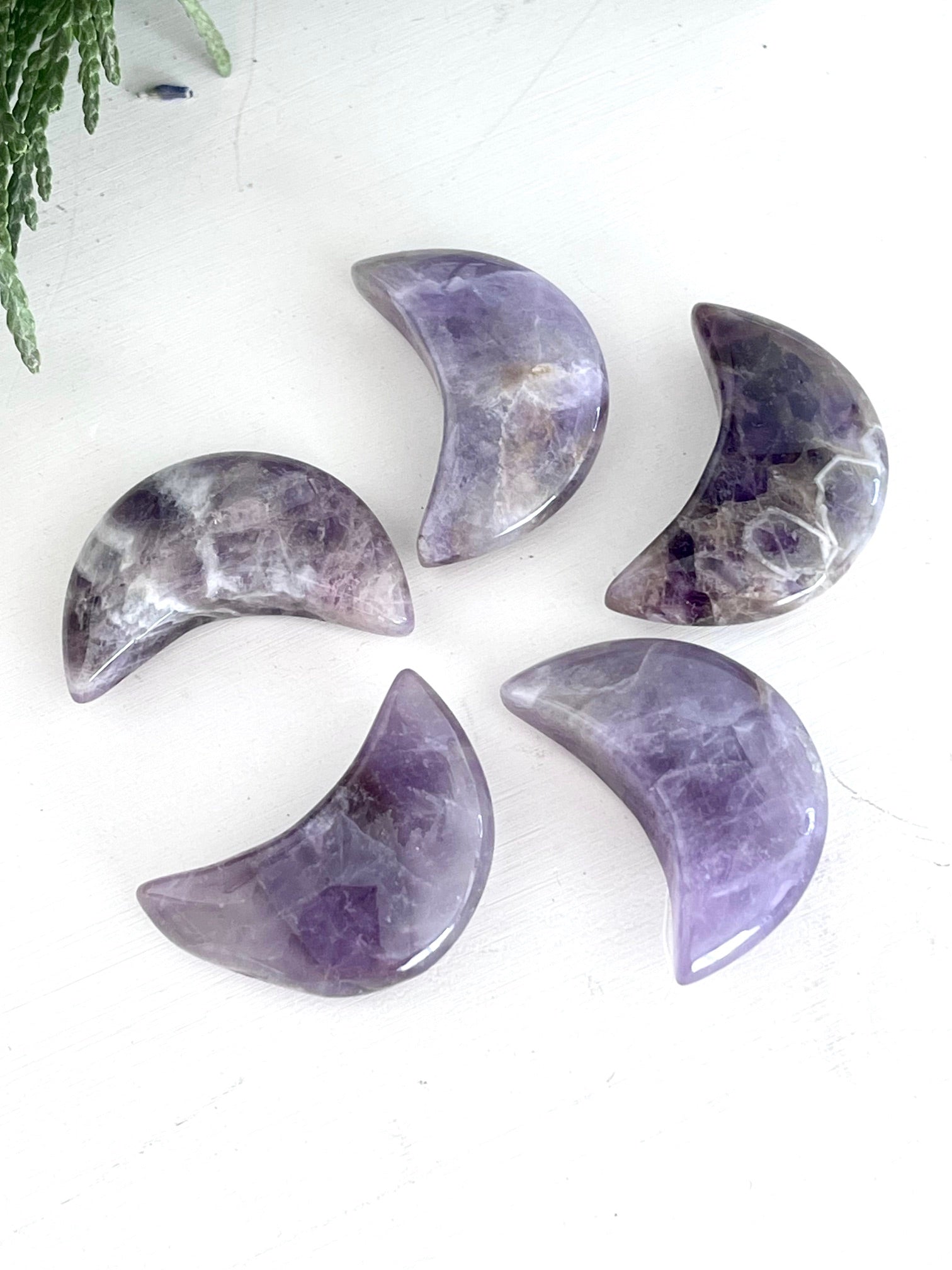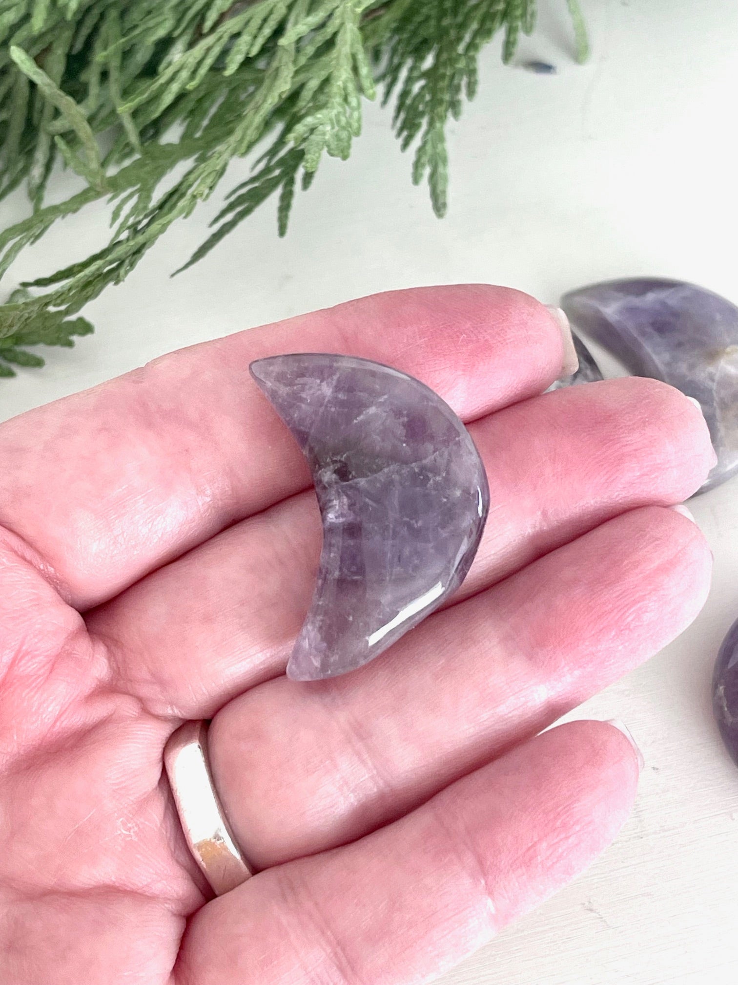 The moon symbolizes intuition & transformation. Combine that with amethyst, known to be associated with the Crown & Third Eye Chakras, promoting spiritual growth, inner peace and emotional balance, and you have a small powerhouse for your spiritual practice.
