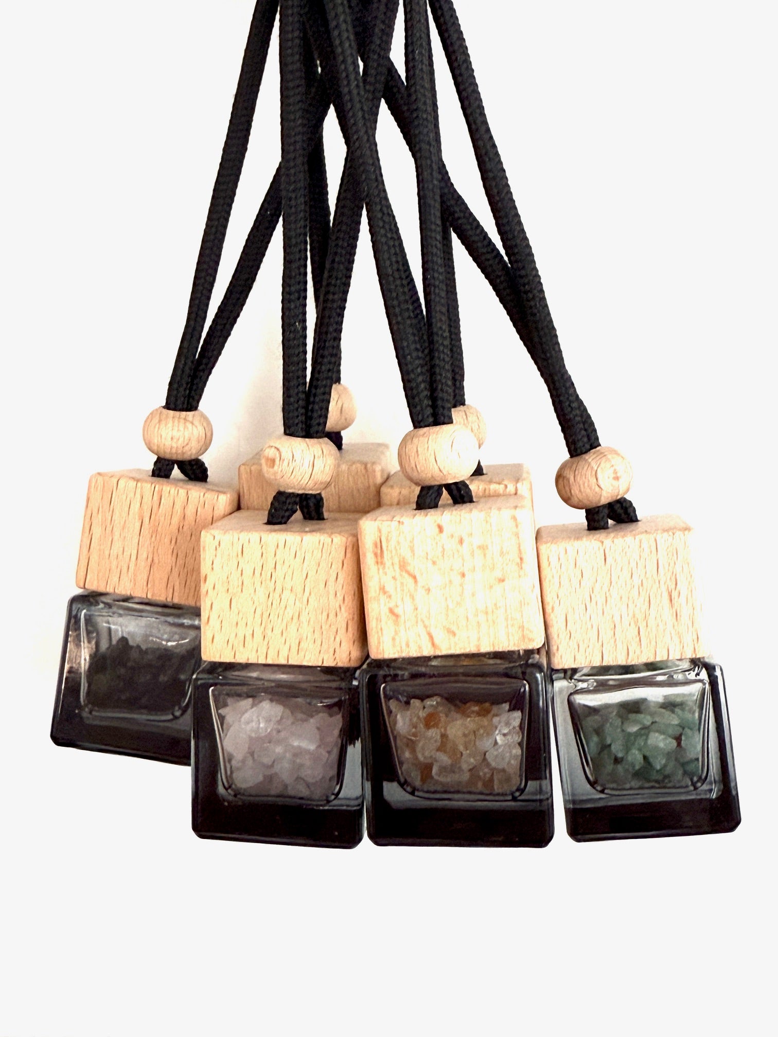 šāØ Crystal Car Diffuser ā Boho Hanging Aromatherapy Charm Bring balance, beauty, and intention to your daily drive with this crystal-infused car diffuser. Featuring a sleek black glass bottle and natural wooden top, this handcrafted charm slowly releases your favorite essential oil while sparkling with the energy of your chosen gemstone.